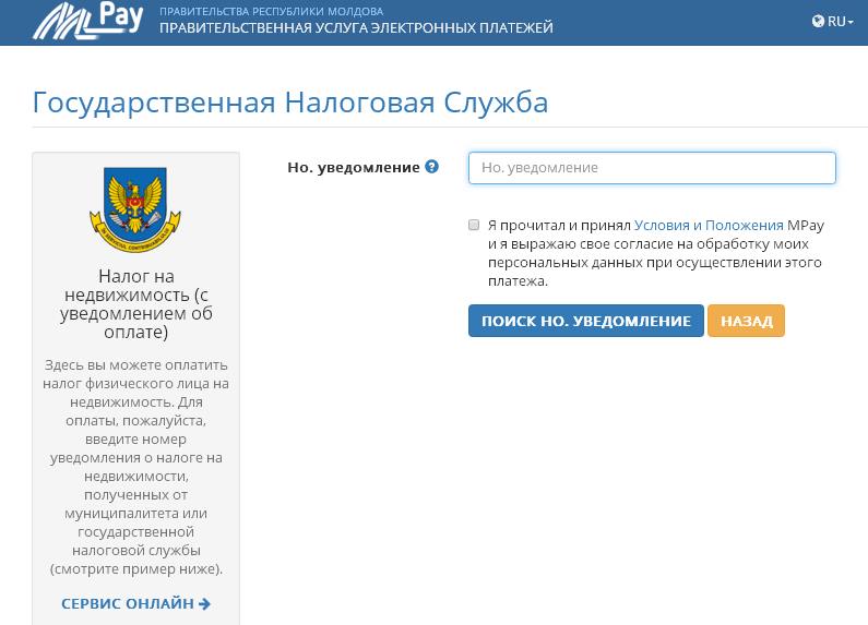 Cum de achitat impozitul imobiliar a persoanei fizice? sept. 5, 2020 De mers pe linkul https://mpay.gov.md/Order/Search/SFS03 şi de trecut paşii.