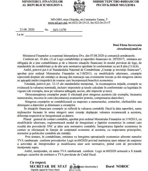 Am primit răspuns de la Ministerul Finanțelor la întrebarea: cum reflectăm în contabilitate restituirea TVA în conformitate cu legea 60/2020 (art. I сapitolul II).