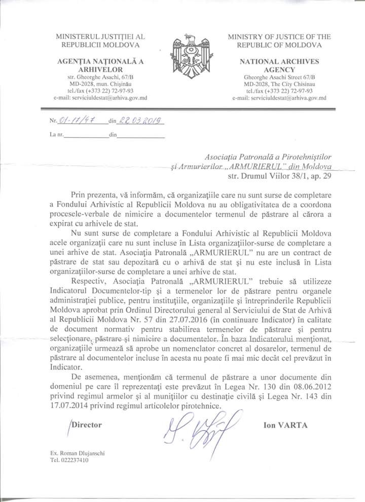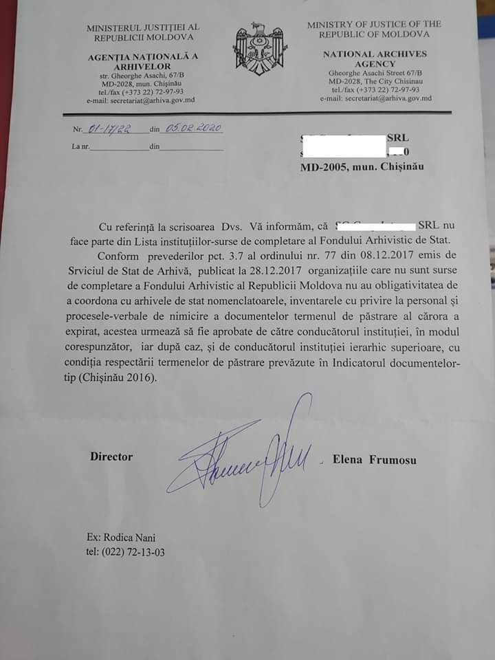 Cîţiva ani în urmă a fost introdusă o remarcă la temă, dar oricum searbădă – sensul ei e că organizațiile care nu sînt surse de completare a Fondului Arhivistic nu sînt obligate să coordoneze cu arhivele de stat nimicirea documentelor.