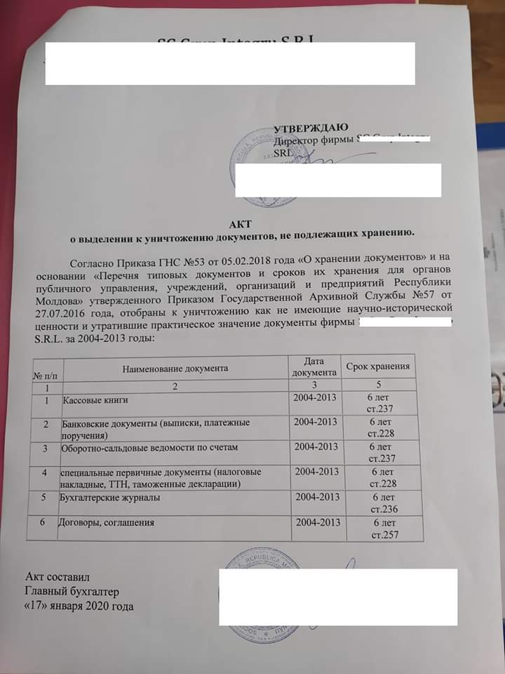 Pînă în prezent nu este clar – întreprinderile private au dreptul să nimicească independent documentele cu termenul expirat de păstrare sau nu?